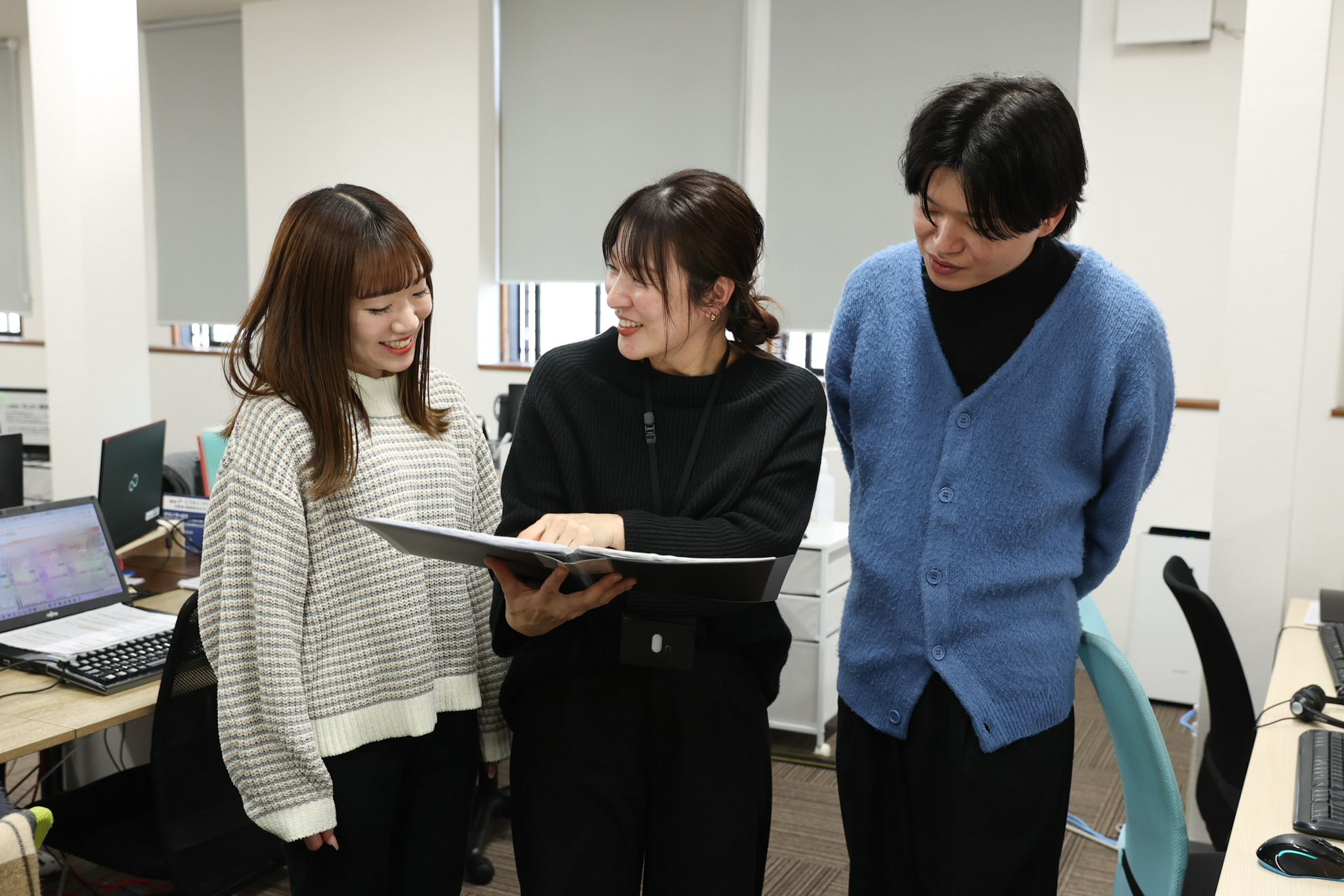 子育てと仕事を両立したい方にとって、DTSの働きやすさは大きな魅力です。「学校行事のときも気兼ねなく休める」「子どもの急な発熱でも相談しやすい」という声が多く、チーム全体でフォローし合う環境が根づいています。スタッフの原田さんも「子育てと両立しやすいし、チームで動いているから休みが取りやすい。本当に助かっています」と話します。職場には親しみやすい人が多く、分からないことがあればすぐ周りに聞ける安心感があり、無理なく続けられる環境が整っています。また、服装・髪色・ネイル自由で、完全内勤のため体力的な負担も少なく、自分らしさを保ちながら働ける点も好評です。